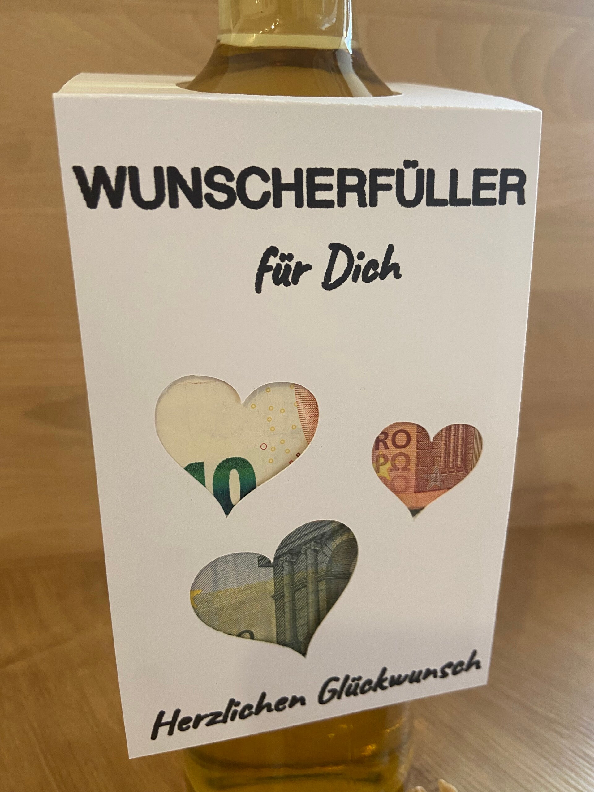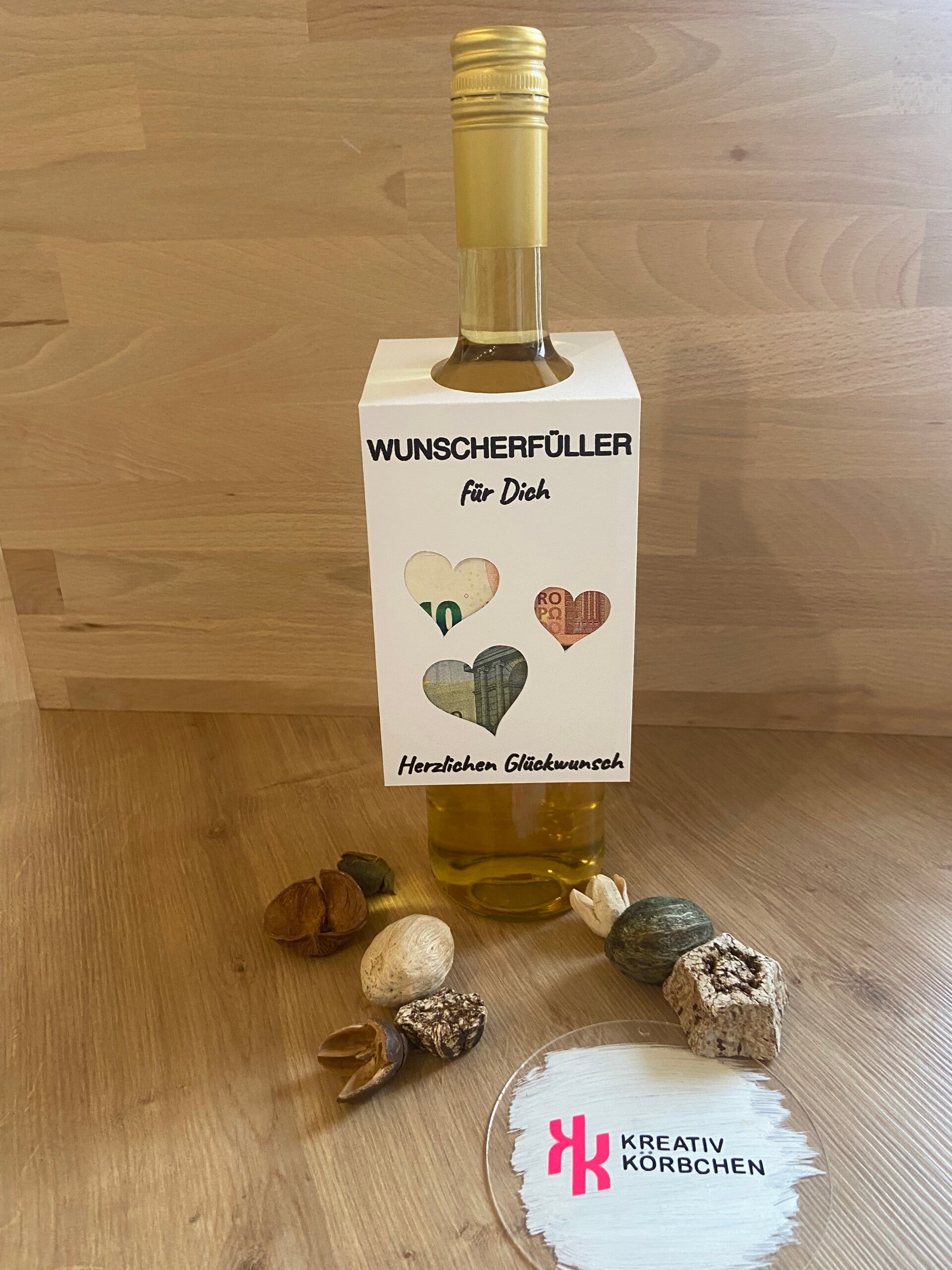 Du möchtest Geld mit einer Weinflasche verschenken, weißt aber nicht wie du es am besten kombinieren kannst? Der Weinanhänger ist eine wunderschöne Möglichkeit, Geld liebevoll zu verschenken.