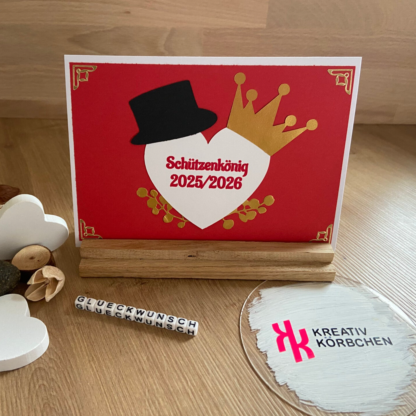 Wunderschöne Glückwunschkarte zum Schützenkönig oder ähnlichen Anlass. Auch als Geldgeschenkkarte geeignet.