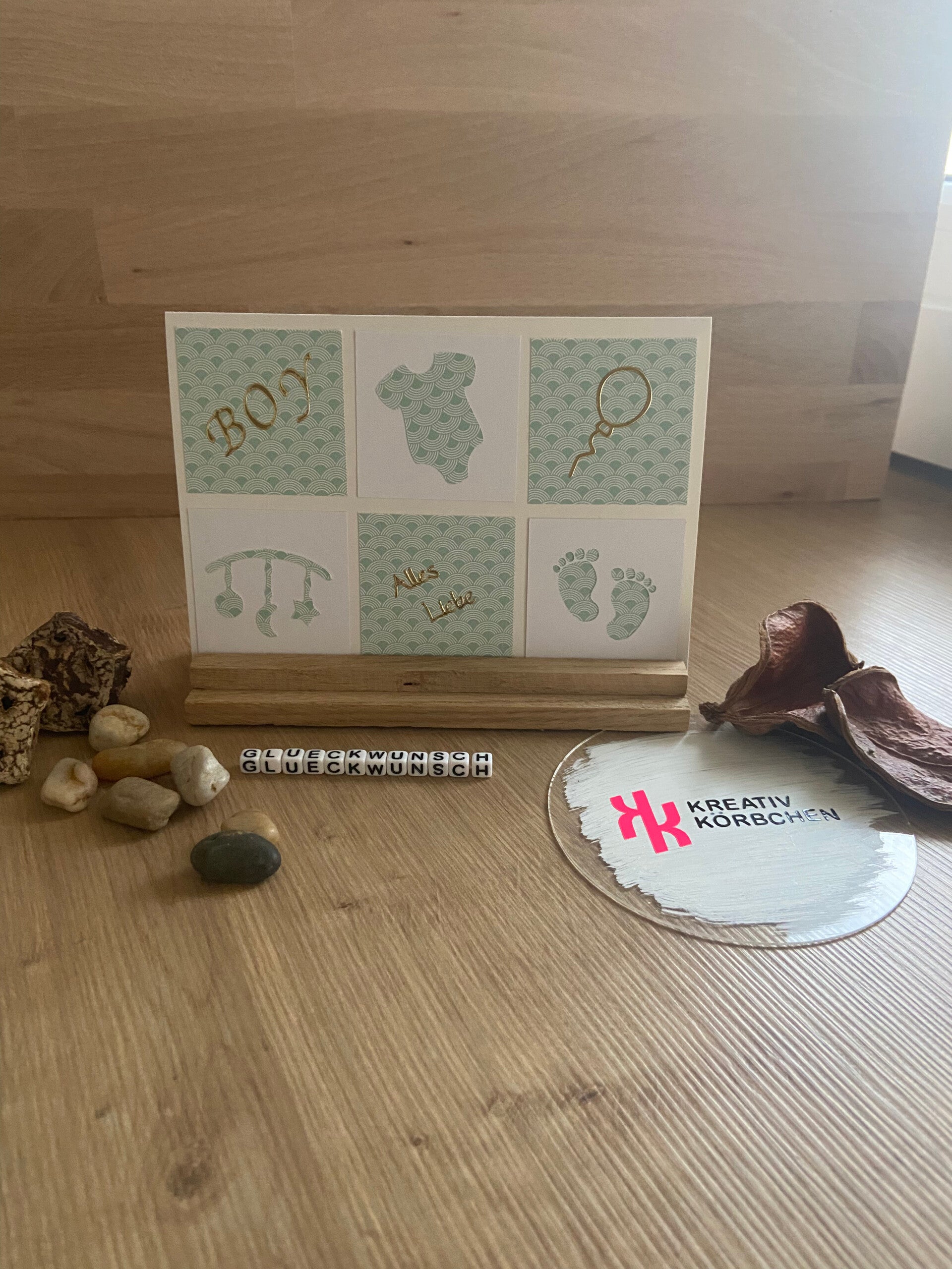 Wunderschöne Glückwunschkarte zur Geburt. Auch als Geldgeschenkkarte / Glückwunschkarte geeignet.
